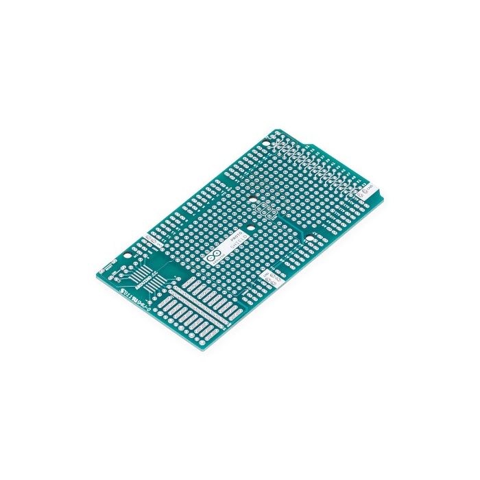 Het Arduino Prototyping Shield maakt het makkelijk om eigen circuits te ontwerpen. Je kunt componenten solderen op het prototype gebied om je project te maken, of gebruik het met een klein breadboard (niet meegeleverd) om ideeën snel te testen zonder te solderen. Het board heeft extra aansluitingen voor alle Arduino I/O-pinnen en het heeft ruimte om 'through-hole' en 'surface mount' IC's te plaatsen. Het is een handige manier om je eigen circuit en Arduino in een enkele module te maken.