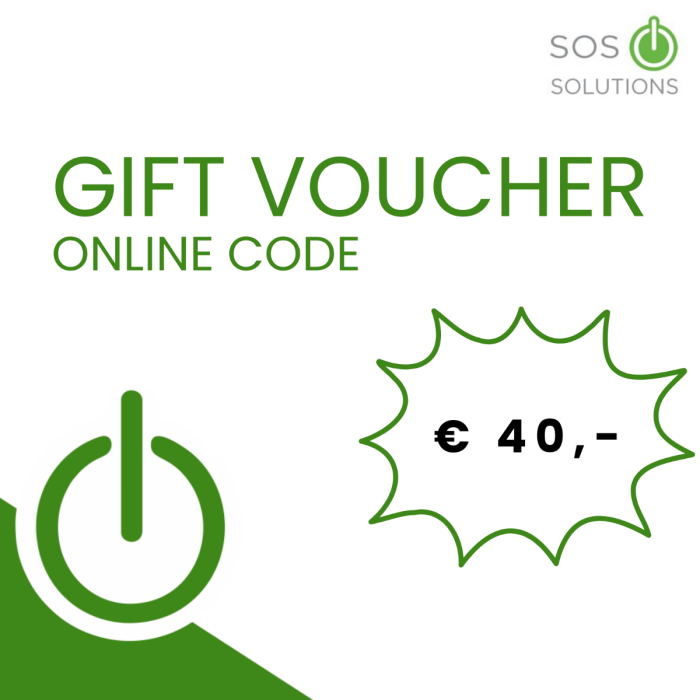 | Korte Beschrijving | Geef met de SOS Solutions Cadeaukaart een prachtig cadeau voor de echte Tech-liefhebber. Het is zowel een leuk cadeau om te geven als om te ontvangen! De ontvanger heeft keuze uit ons ruime constant vernieuwnde assortiment! |