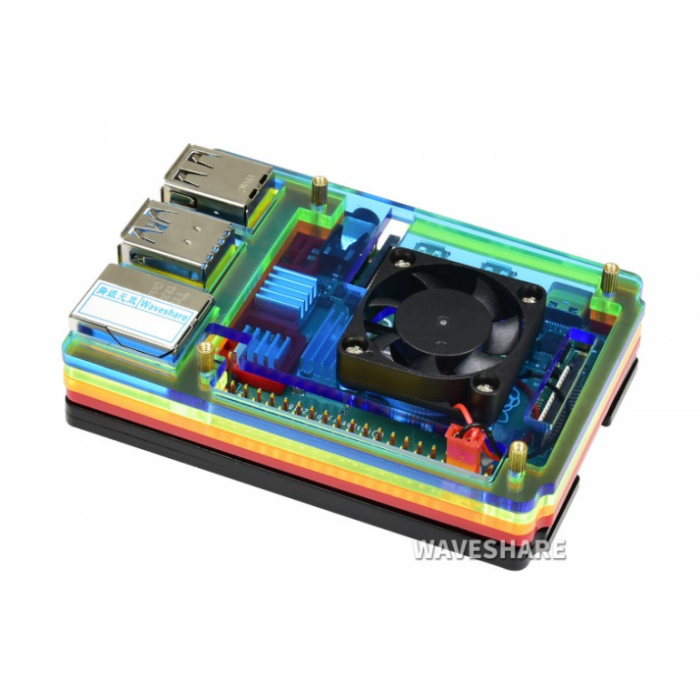 Omschrijving / Regenboog Behuizing voor Raspberry Pi 4 met Ventilator