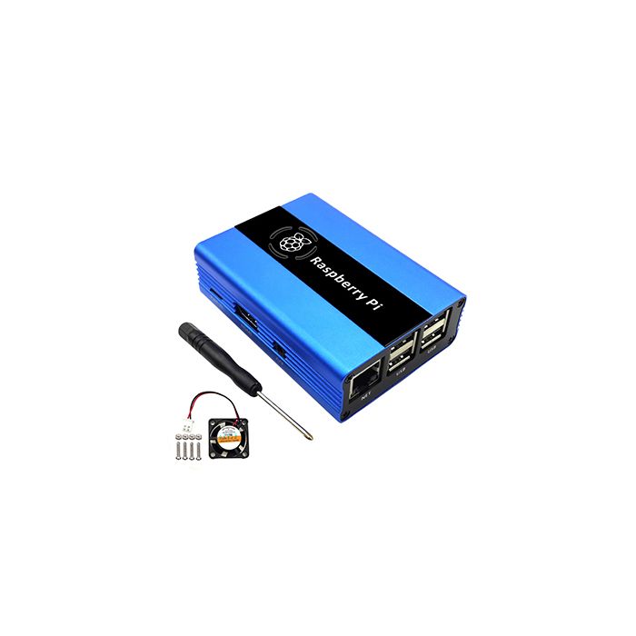 Omschrijving / Eleduino Behuizing Aluminium met Ventilator voor RPi 3 - Blauw
