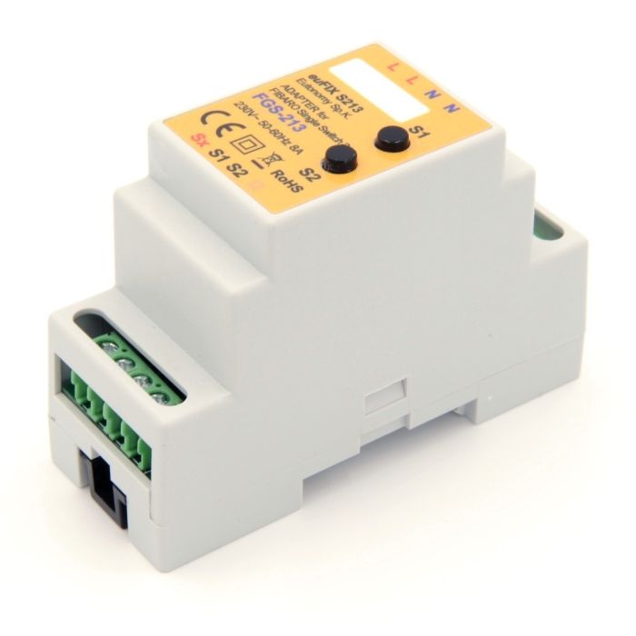 | Korte Beschrijving | DIN rail module voor de FIBARO schakelaar FGS-213. Versie met schakelaars. (FIBARO schakelmodule wordt niet meegeleverd). |