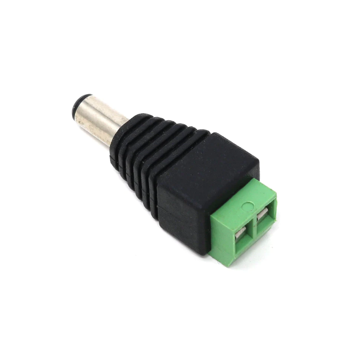 Uw 2,1 mm-cilinderaansluiting wordt op het ene uiteinde aangesloten en de andere kant heeft aansluitblokken voor het bevestigen van draden.