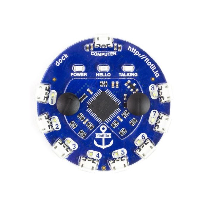 De Flotilla Dock gebruikt de ATMEGA32A4U-microcontroller om met de Flotilla-modules te praten en gegevens door te sturen van en naar de aangesloten computer.