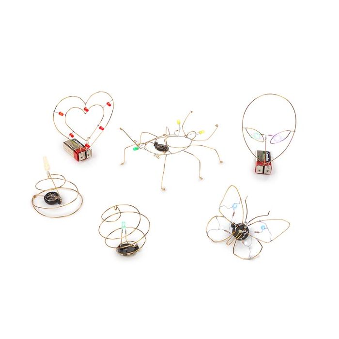 Deze set bevat alle gereedschappen en componenten om minstens 6 verschillende freeform-projecten te maken. Elk project bestaat uit eenvoudig te solderen elektronica en is dus geschikt voor zowel beginners als ervaren makers!