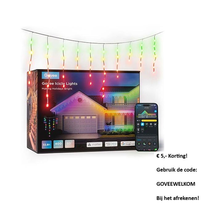 | Korte Beschrijving | Met de Govee Icicle Lights creëert u een prachtige, kleurrijke verlichting voor elke gelegenheid, zowel binnen als buiten. Dankzij de unieke Uni-IC technologie heeft elke lamp een eigen chip, waardoor u per lampje nauwkeurige en levendige kleuren kunt instellen. Met maar liefst 16 miljoen kleurmogelijkheden en een dichte verdeling van lampjes, gaat u voor betoverende lichtpatronen die passen bij elke stemming of gelegenheid. Bovendien zijn de Govee Icicle Lights IP65-gecertificeerd, wat betekent dat ze bestand zijn tegen verschillende weersomstandigheden en dus perfect geschikt zijn voor uw tuin, terras of balkon. De Govee Icicle Lights biedt een indrukwekkend scala aan slimme functies en instellingen. Met meer dan 64 scène-opties en de mogelijkheid om AI-gegenereerde lichteffecten te creëren, kunt u effecten genereren via tekst, audio of zelfs afbeeldingen. Via de Govee Home-app (iOS & Android) kunt u eenvoudig DIY-patronen maken met de Finger Sketch functie, waarmee u unieke ontwerpen creëert. Bediening is gemakkelijk met spraakopdrachten via Alexa of Google Assistant en ondersteuning voor Matter, waardoor u uw verlichting eenvoudig kunt personaliseren en bedienen. Deze lichtslinger is 10 meter lang. |