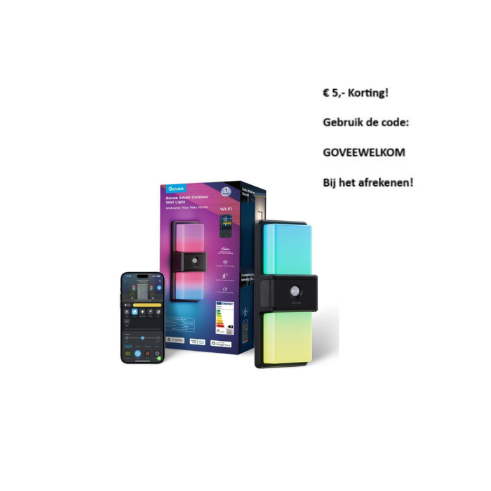 | Korte Beschrijving | Verlicht je buitenruimte met de Govee Smart Outdoor Wall Light, ontworpen voor zowel stijl als functionaliteit. Deze slimme wandlamp biedt een scala aan kleuren en scènes om elke gelegenheid te verlichten. |