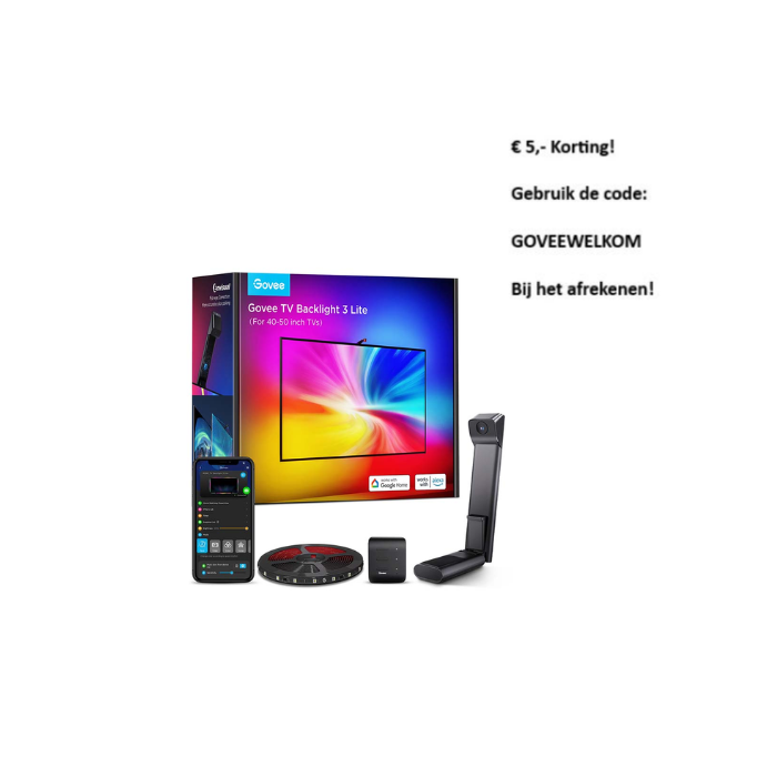 | Korte Beschrijving | Upgrade je visuals met de Govee TV Backlight 3 Lite. Deze Back Light corrigeert de vervorming met een breedhoeklens, waardoor het effectieve kleurafstemmingsbereik wordt vergroot voor nauwkeurigere randen. Deze set biedt aanpassingsmogelijkheden voor ultradunne tv's en meer! |