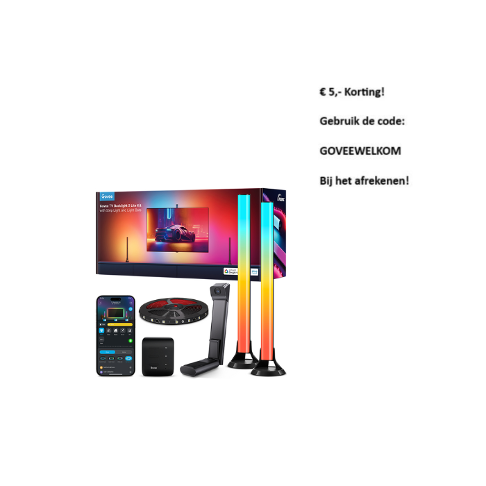 | Korte Beschrijving | De Govee TV Backlight 3 Lite Kit biedt indrukwekkende lichteffecten. Met 4-in-1 LED's krijg je levendige visuals, terwijl de video- en audiosynchronisatie zorgt voor een meeslepende sfeer. Dankzij slimme spraakbesturing en app-bediening pas je eenvoudig de verlichting aan naar jouw voorkeur. De Fish-Eye Correctiecamera vergroot het bereik voor nauwkeurige kleurmatching en met het zwaartekracht-hangsysteem installeer je de kit eenvoudig. Bovendien is de kit compatibel met Alexa en Google Assistant, wat zorgt voor een optimale thuisbioscoop ervaring. |