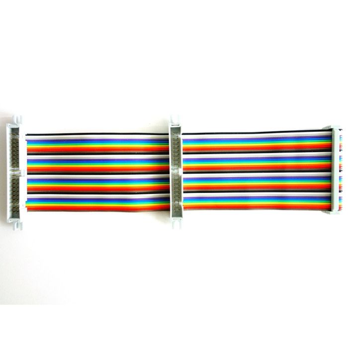 De standaardlengte van de ribbonkabel is 20 cm, met één mannelijke connector voor een add-on board in het midden (10 cm), een andere mannelijke connector aan het ene uiteinde en een vrouwelijke GPIO-connector die op de Raspberry Pi aan het andere uiteinde past.