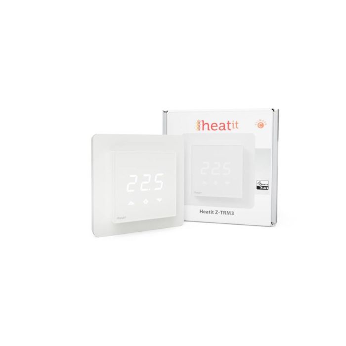 Heatit Z-TRM3 is een elektronische thermostaat voor elektrische vloerverwarming, ontworpen voor montage in een standaard spoelkast. De thermostaat heeft een ingebouwde Z-Wave chip die kan worden aangesloten op Home Automation systemen. De Heatit Z-TRM3 is uitgerust met een enkelpolige schakelaar en past in System 55-frames. De thermostaat is bestand tegen een belasting van max 16A / 3600W bij 230V. De thermostaat kan worden gebruikt voor verwarming op waterbasis als de thermostaat is aangesloten op de Heatit Z-Water.
