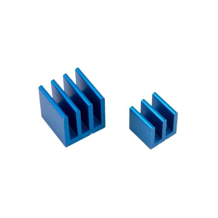 De Raspberry Pi Heat Sink Kit bestaat uit twee hoogwaardige aluminium koellichamen, elk geselecteerd om perfect te passen bij de grootte van de belangrijkste warmteafgiftecomponenten op uw Raspberry Pi-bord.