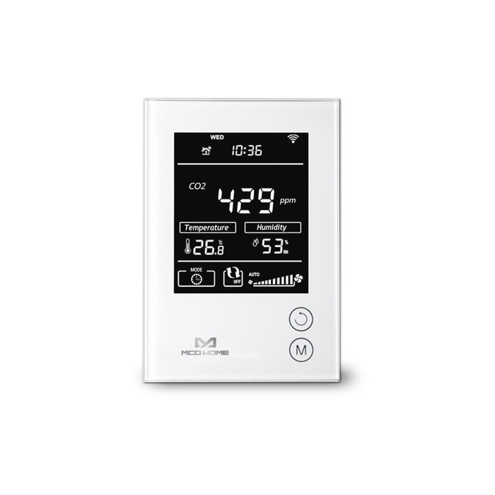 Met deze meter kunt u de CO2 in je huis meten. U kunt ook de binnentemperatuur, luchtvochtigheid en VOS (vluchtige organische stoffen) meten. De monitor maakt gebruik van Z-wave plus en WiFi. Daarnaast kan het apparaat ook aangepast worden via de outputs om bijvoorbeeld een luchtventilatie systeem aan te sturen. Dit model werkt op een voeding van 12V.