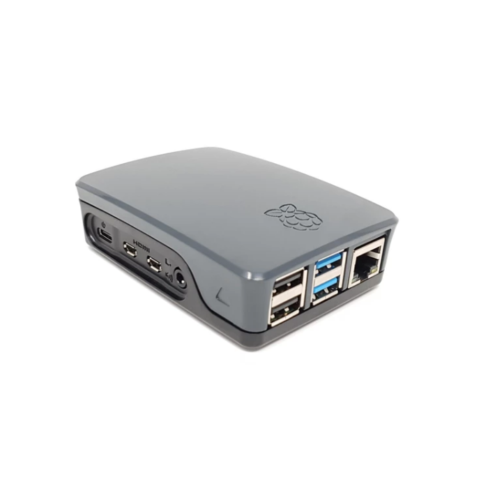 De officiële Raspberry Pi 4 Model B behuizing, ontworpen door de Raspberry Pi Foundation om de ideale behuizing voor de Raspberry Pi 4 Model B te zijn.