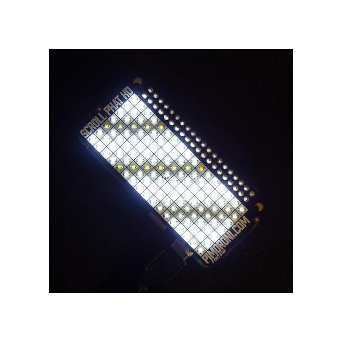 | Korte Beschrijving | Scroll pHAT HD verpakt 17x7 pixels (119 in totaal) op een enkele pHAT en geeft je volledige PWM-helderheidsregeling over elke pixel. Maak prachtige animaties en zelfs anti-alias tekst door gebruik te maken van de helderheid per pixel. |