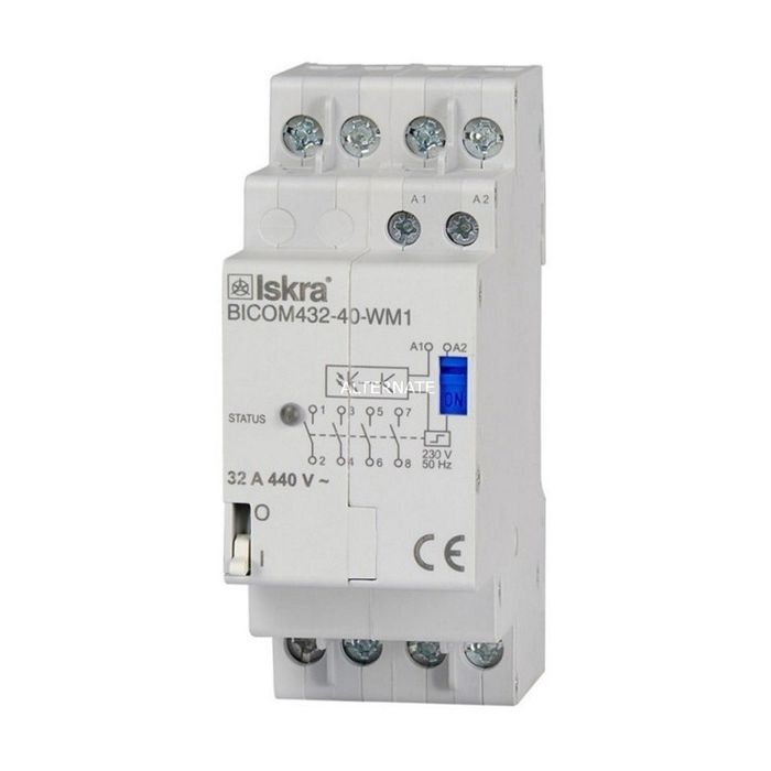 Deze 440V schakelautomaat van Qubino past in de meterkast. Plaats deze op een DIN-rail langs de Qubino-smart meter, waarna het energieverbruik in de gaten gehouden kan worden. De automaat kan worden ingeschakeld door infrarood of een signaaldraad op de contacten A1 en A2.
