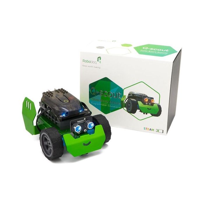 | Korte Beschrijving | De Robobloq Q-Scout is een betaalbare, eenvoudig te gebruiken robot voor kinderen om ervaring op te doen met grafisch programmeren (met Scratch 3.0), elektronica en robotica. Het is een alles in een oplossing voor het leren over robotica en ontworpen voor STEAM onderwijs. |