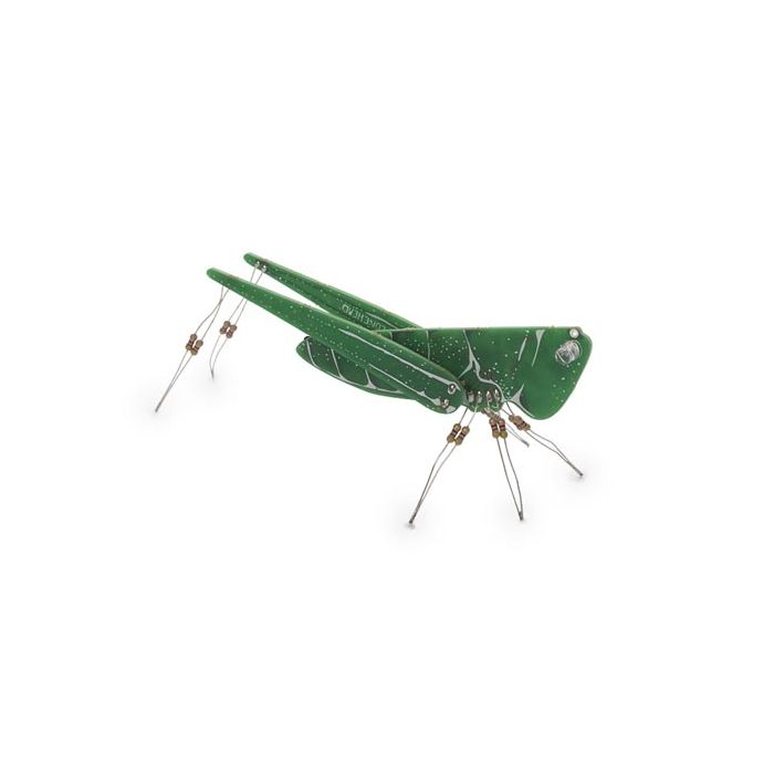 Met behulp van een kleine luidspreker en een fototransistor zal de krekel zijn tjilpende frequentie veranderen afhankelijk van de hoeveelheid licht die hij 'ziet'.