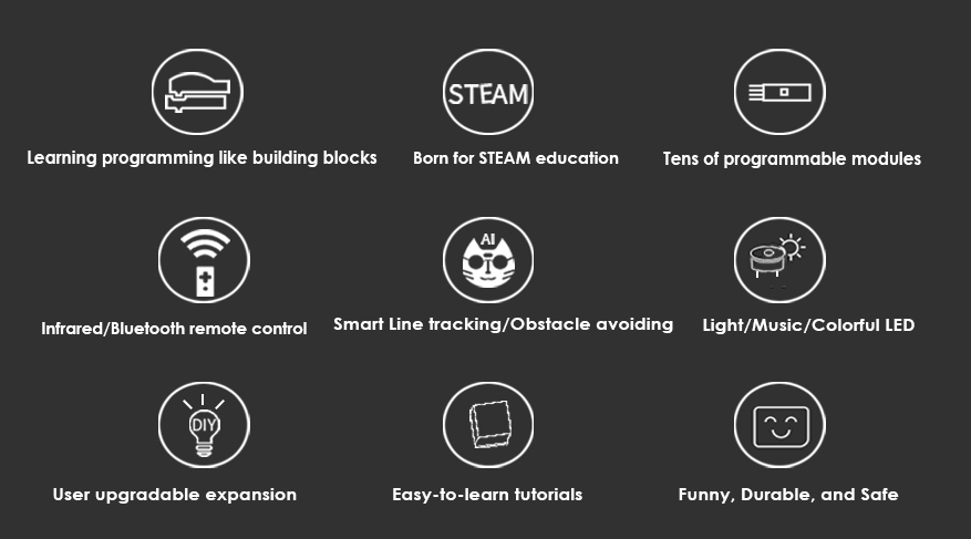 KitiBot is speciaal ontworpen voor STEAM-educatie, wordt geleverd met grafische programmeersoftware om kinderen te helpen programmeren, net als eenvoudig bouwstenen maken.