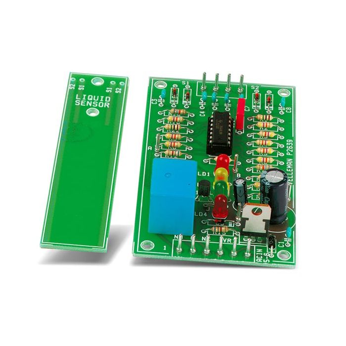 Beter voorkomen dan genezen met deze vloeistofniveaudetector. Dit veelzijdig apparaatje kan op verschillende manieren ingezet worden. LED-indicatie van het vloeistofpeil : LAAG, MIDDEN, HOOG. Controller : het relais schakelt automatisch een pomp en/of klep om het vloeistofniveau tussen het LAAG en HOOG peil te houden. Alarm : indien de sensor te laag of te hoog niveau (naar eigen keuze) detecteert, schakelt het relais bvb. bel, of andere alarmgevers aan.